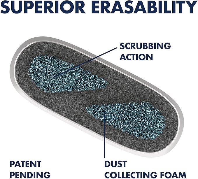 - ERASE WITH LESS EFFORT – Simply glide this eraser over a dry-erase board with no vigorous scrubbing. The dual material of foam and felt smoothly picks up ink and dust.