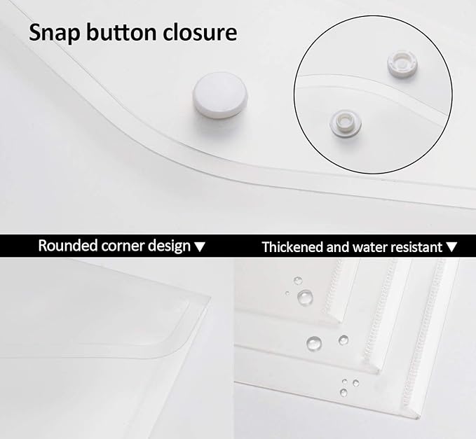 24 Pack A5 Plastic Envelopes - Agoer Clear Plastic Poly Envelope with Button Snap Closure, Clear Plastic Folders for Documents, Plastic File Bag Filing Envelopes for School Work Office Organization