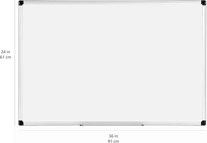 Amazon Basics Magnetic Dry Erase Whiteboard, 36"W x 24"H, Aluminum Frame, Silver/White