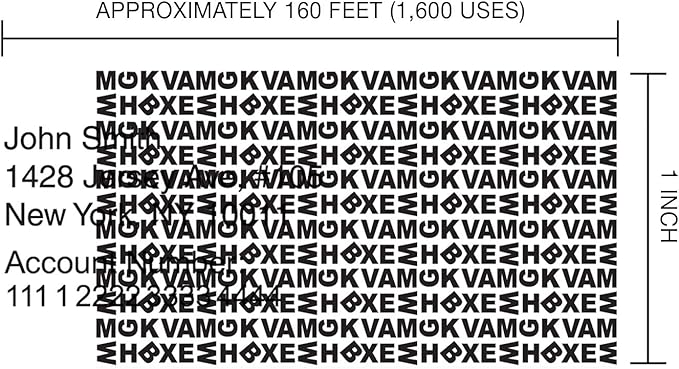 - LONG-LASTING & COVERAGE: Each roller will last approximately 1,600 impressions or 160 feet. The pattern width is 1.0 inches, covering six lines of standard text with Adjustable roller length. Each Guard Your ID Roller is protected by a twist-on cap to prevent from random stamping and drying out with a shelf life of 2 years.