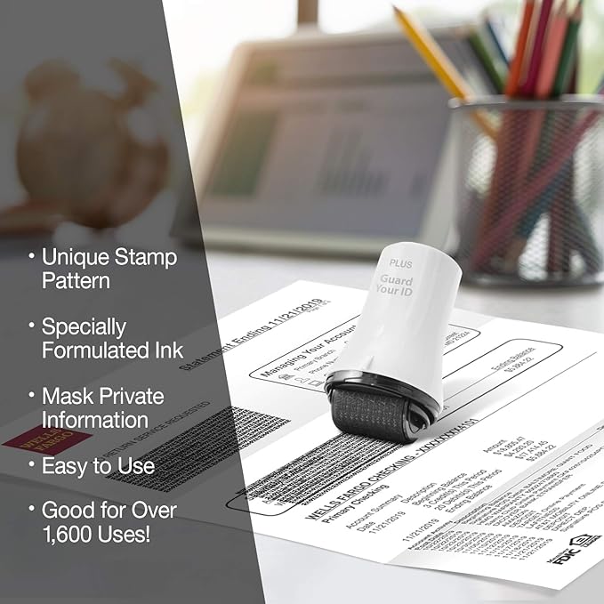 - PROTECTS YOUR IDENTITY WITHIN SECONDS: Our unique patent roller pattern and formulated ink will work on all paper sources and most glossy surfaces. With one swipe, Guard Your ID roller will mask your private information concealing your data for good and helping to safeguard you from identity thieves or anyone searching through your document storage, discarded mail, or recycle bin.