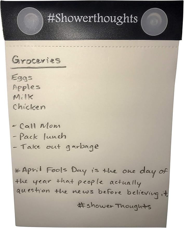 • Write down creative ideas, notes, lists, quotes, and sketches before your thoughts escape you! #ShowerThoughts