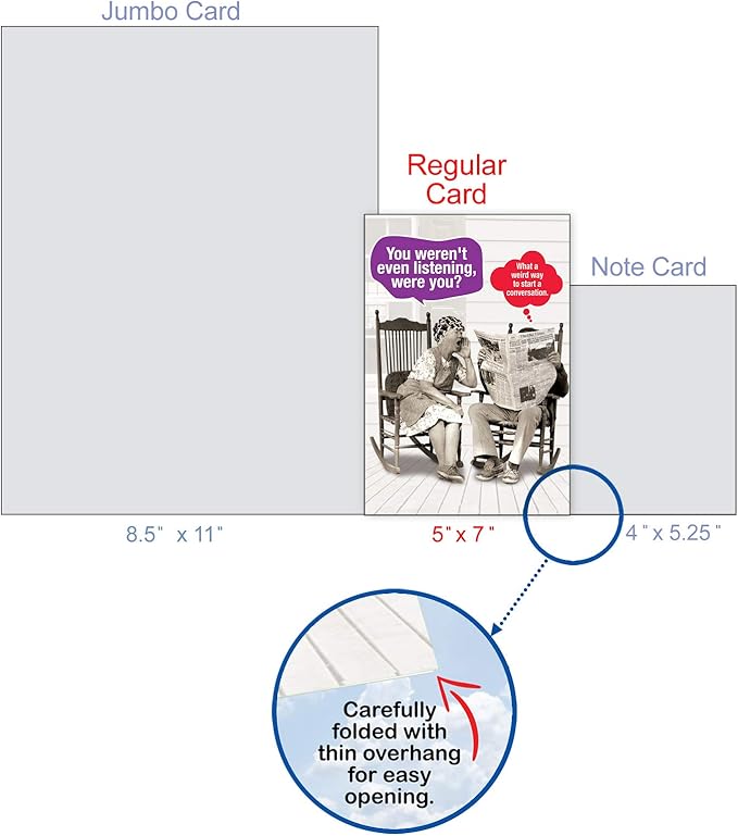 - CARD SIZE - Receive 1, regular sized notecard with 5x7 Inch envelope. We offer funny cards that come either blank or greeted inside, so be sure to review all product photos before purchasing.