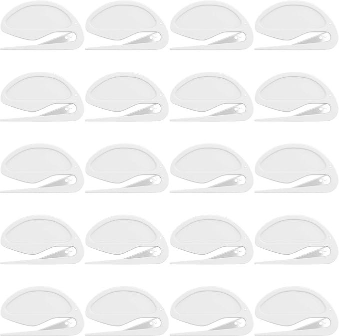 Onwon 20 Pieces Letter Opener Envelope Slitter with Safety Concealed Blade Package Opener Slitter Paper Knife Plastic Openers Razor Blade for Office Home Supplies, White