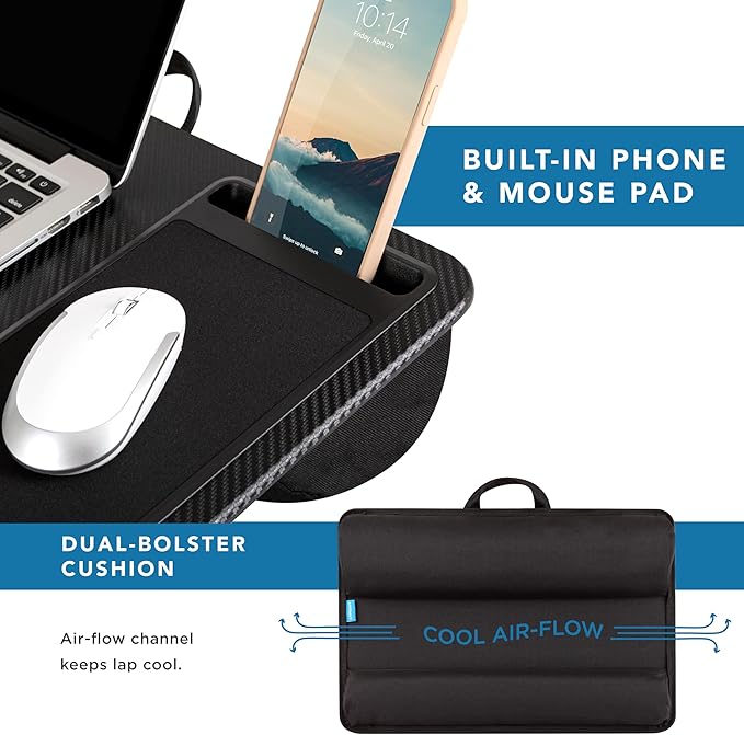 - Cool Comfort: Enjoy a stable surface with our lap desk's dual bolster cushion, designed for comfort and airflow, keeping your lap cool during extended use.