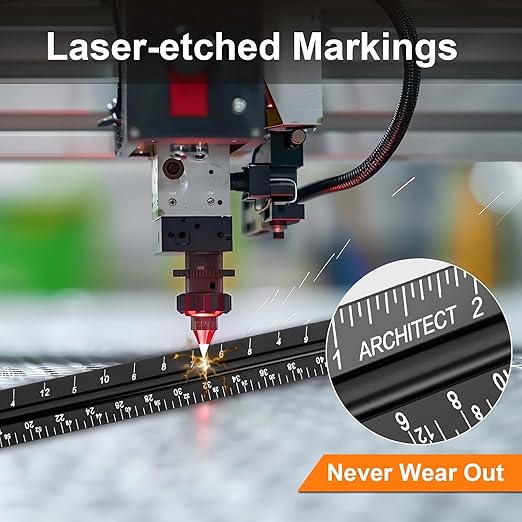 - [LASER ETCHED TECHNOLOGY] All numbers and measurement markings on drafting scale rulers are laser etched for maximum clarity and readability. Laser etched technology effectively prevents scale numbers and markings from wearing off or fading away
