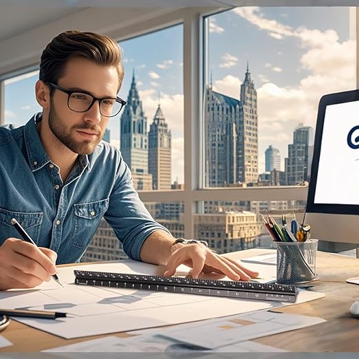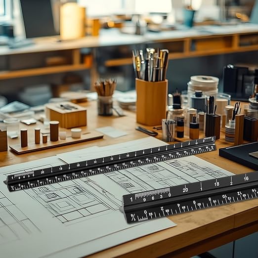 - [PRECISE IMPERIAL SCALE] The aluminum triangle ruler is professional grade with supreme accuracy. With reliable construction and accurate performance, the black construction ruler is ideal for architects, engineers, draftsmen and students