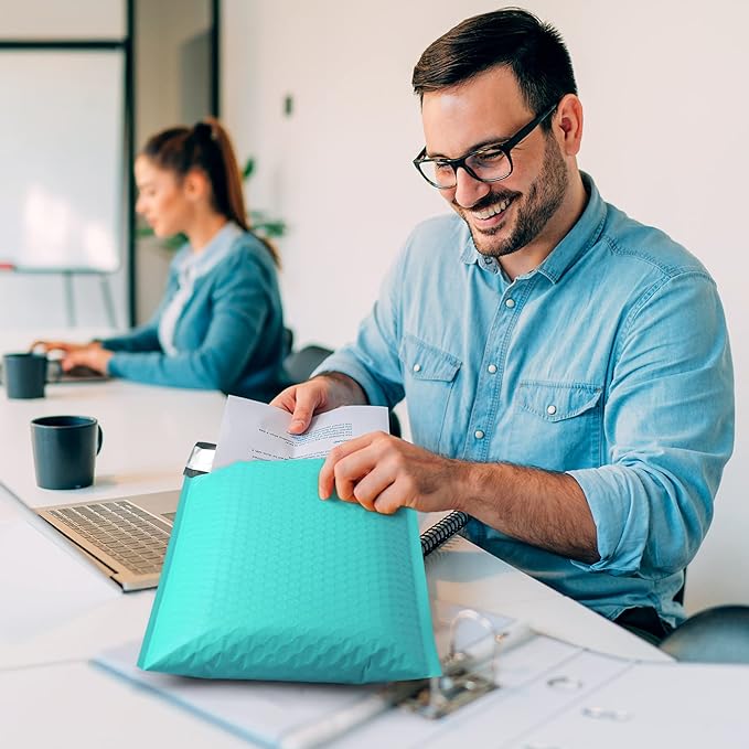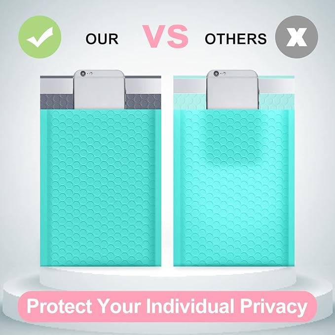 - Opaque Poly Bubble Mailers:The teal bubble mailers outer size is 7.25x12 inch, while the inner size is 7.25x11 inch. With full air bubbles, our bubble mailers can protect your value products from damage caused by external impacts. The inner lining is using gray film, even if there is strong light, the items in the bag cannot be seen, which can protect your privacy well