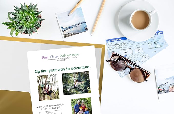 • BULK PACK: 25-Pack of glossy METALLIC GOLD paper folders to fit 8.5" x 11" paper/documents; white box included