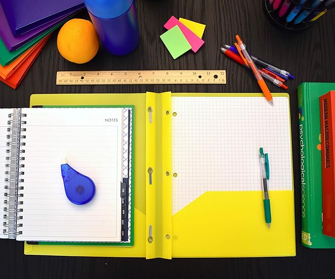 • Includes 3 letter size poly folders (9-3/4" W x 11-1/2" H) with two pockets and 3-hole punch prong fasteners, perfect for school paperwork, forms, and homework