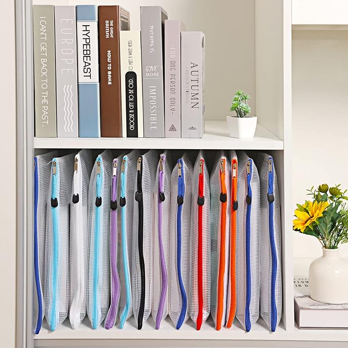 - PACKAGE INCLUDES: 24 mesh zipper pouches in 8 different colors, red, orange, yellow, green, light blue, dark blue, violet, black, 3 pcs for each color, these zipper bags can help organize documents.