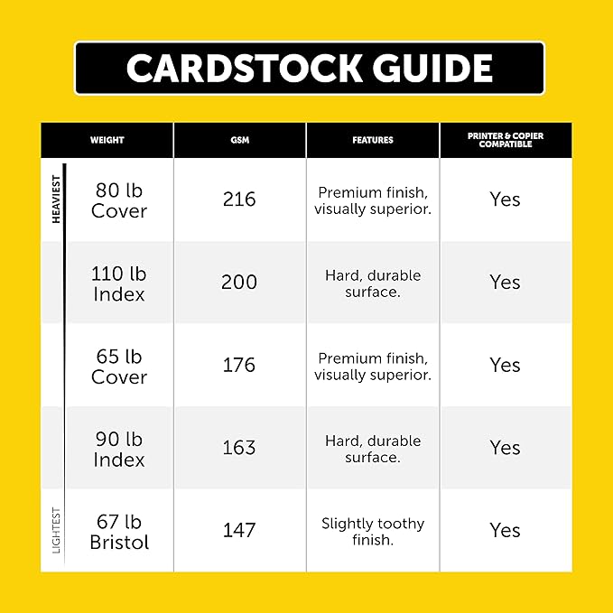 - PREMIUM PRINT PERFORMANCE: Create crisp prints with high-color reproduction and jam-free results Enjoy bleed-free double-sided prints in copiers inkjet and laser printers Plus our cardstock is lignin and acid-free to reduce yellowing over time