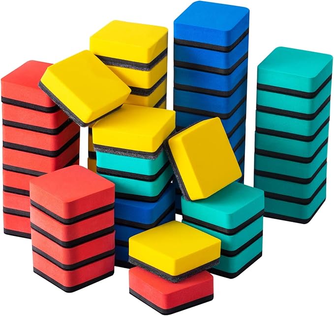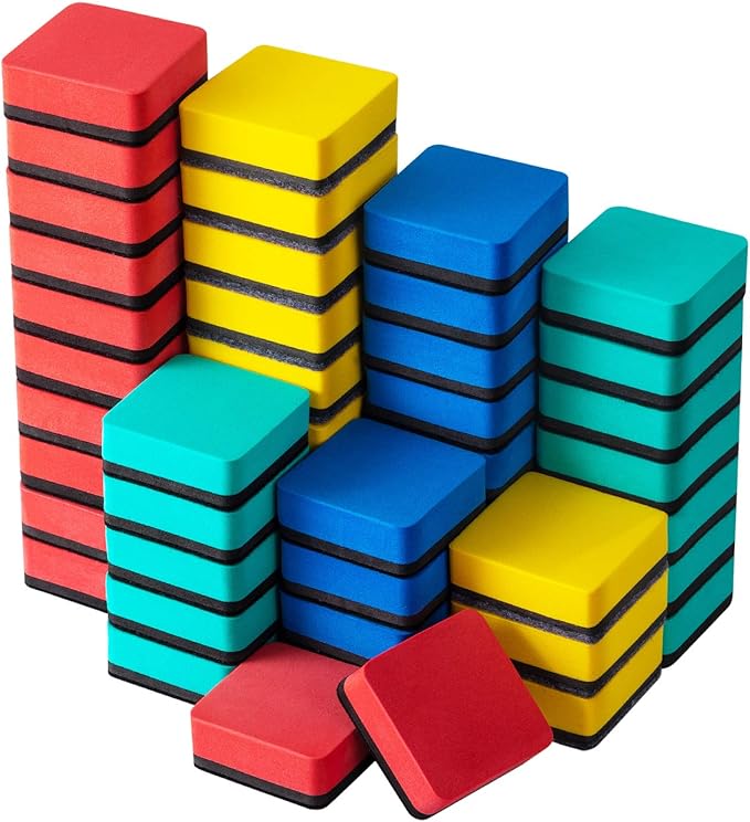 Favourde 48 Pack Magnetic Whiteboard Dry Erase Erasers Chalkboard Cleansers for Classroom, Home and Office (4-Color, 1.97 x 1.97 Inch)