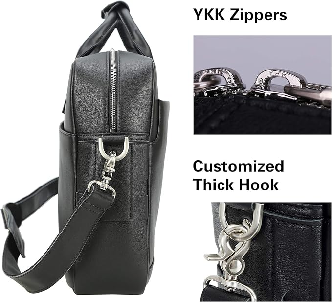 Polare Leather Briefcase for Men Business Travel Messenger Bags 15.6 Inch Laptop Bag YKK Metal Zipper