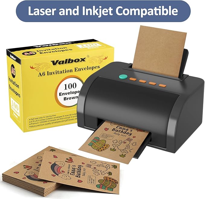 - 【Printer Friendly】Print with your Laser and Inkjet Printers on our A6 greeting card envelopes. Perfect size and weight, never worry about smudging or having the envelopes engulfed by your printer.