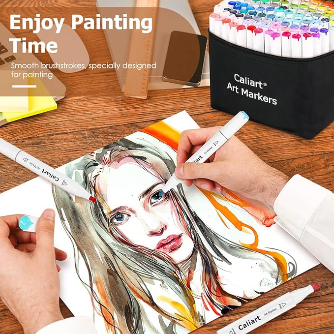 Caliart Markers, 121 Colors Dual Tip Art Markers Sketch Pens, Easter Basket Stuffers for Kids Teens Toddler, Permanent Alcohol Based Markers for Adult Book Eggs Decorations Gift Drawing Supplies Kit