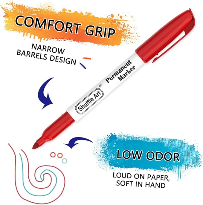 - UNLIMITED USES:Shuttle Art permanent markers are ideal for detailed marks,drawing, writing, coloring, scrap booking, doodling, filling in paper, plastic, metal and most other surfaces that allows you to show off your creative side.
