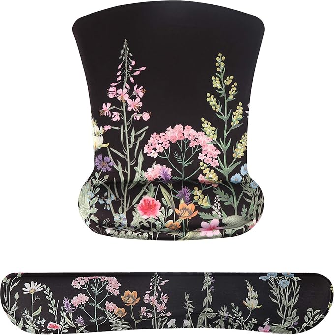 iCasso Mouse Pad and Keyboard Wrist Rest, Wrist Rest for Computer Keyboard, Made of Memory Foam with Wrist Support, Easy Typing and Relieve Wrist Pain Keyboard Pad for Computer, Office (B-Weeds)