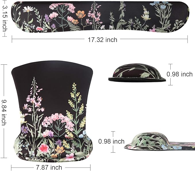 - Ergonomic Design: The curved design of these two wrist rests fits perfectly on the wrist. Provide soft support to relieve the pressure, fatigue and pain of your wrist