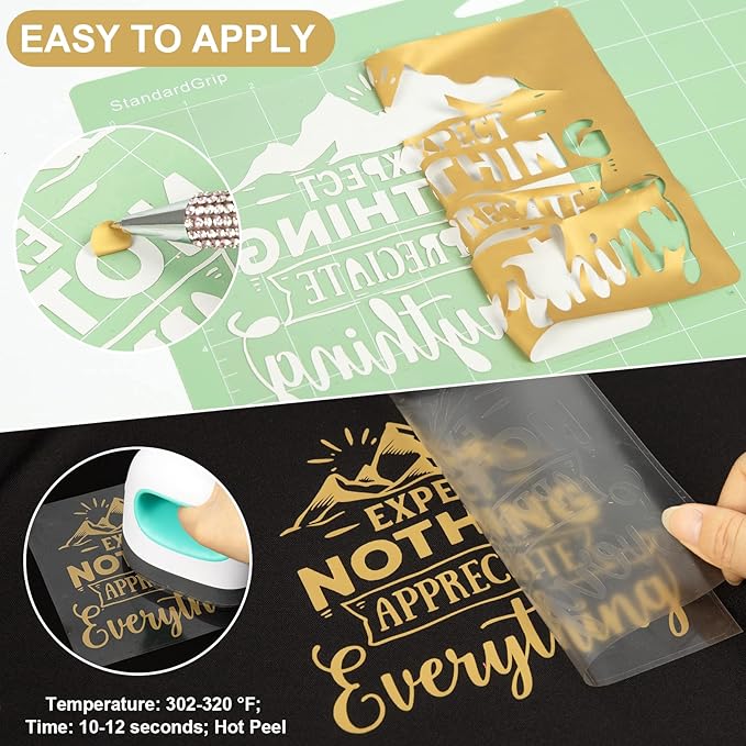 - ✂️EASY TO APPLY: Just use craft cutter and a home iron to get the job done. Apply for approximately 10-12 seconds at 302-320 °F (150-160 °C) and about 10 LBS of pressure. Be sure to cold peel.