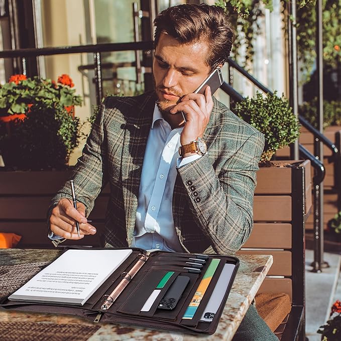 - Innovative design with plenty of storage for everything, such as files, iPad, legal pads, pens, business cards and more. This padfolio will be a great help for improving your productivity.