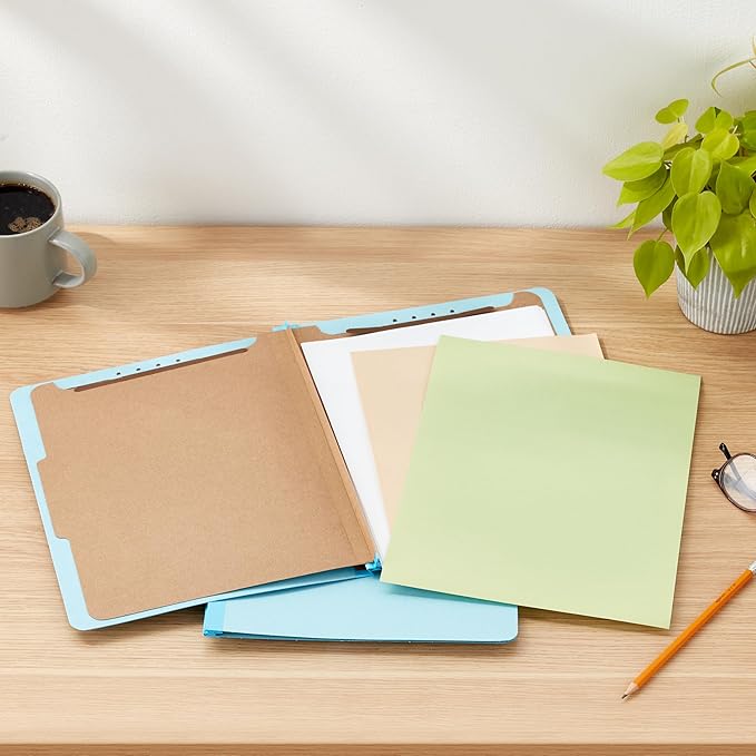 Amazon Basics Classification Folder, 100% Recycled, 2 Dividers, 2" Embedded, 12.17 x 10.39 inch (Letter), Light Blue, 10 Count per Box