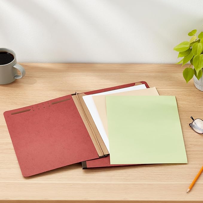 Amazon Basics Classification Folder- 100% Recycled, 1 Divider, 2" Embedded, 10 Count per Box, 12.09 x 10.63 inch (Letter), Red