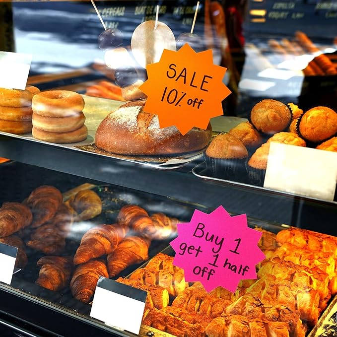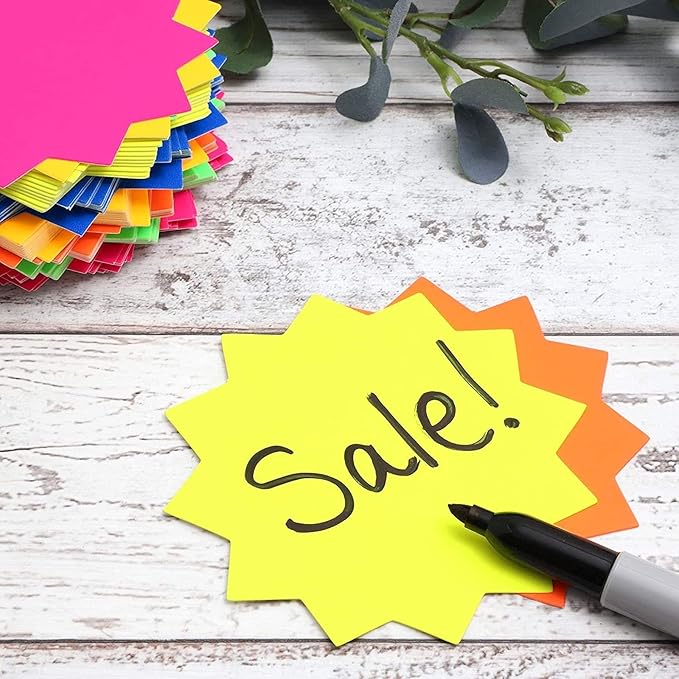 - Precut: The precut starburst shape makes them easy to use for a variety of purposes, from sale signs to classroom use, you can save time and effort with these colorful and unique signs