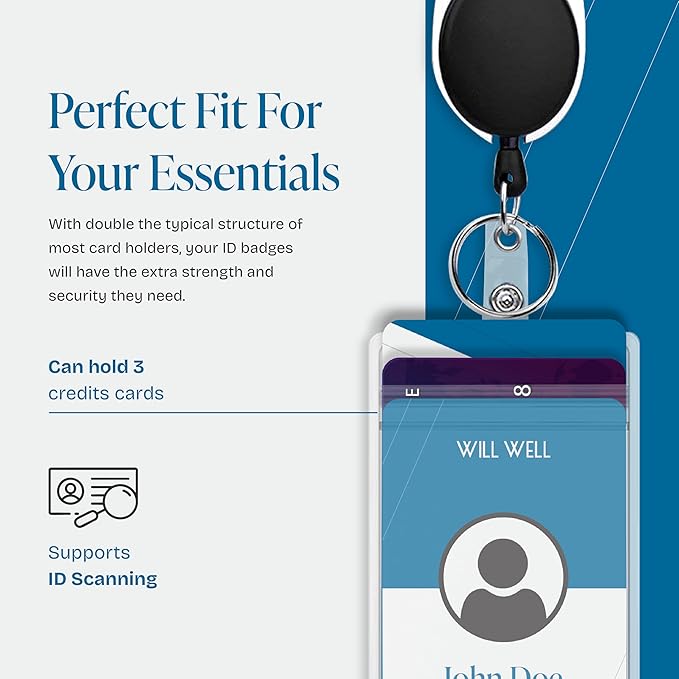 - 【Buy with confidence】 Comes with 10pcs premium vertical style clear ID card holders. Inner dimensions of name Card holder is 2.52" W x 3.58" L, each one can easily hold 3 credit card sized cards. Please don't hesitate to contact us via Amazon message system if at any time you aren't completely satisfied with your purchased.