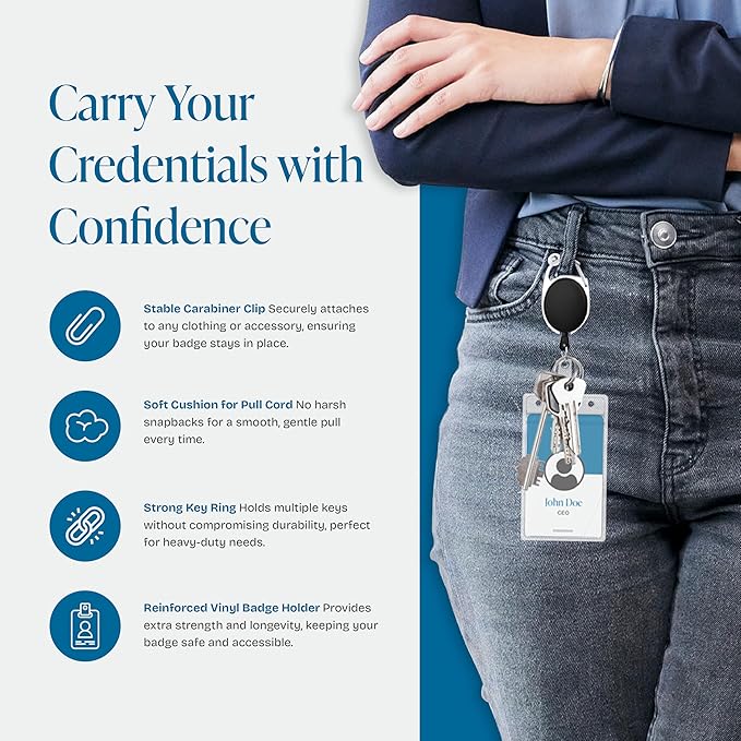 - 【Top Quality】 Upgraded and reinforced construction makes the most solid and durable retractable badge holder of this kind on the market. we're different in all of these products that look the same!