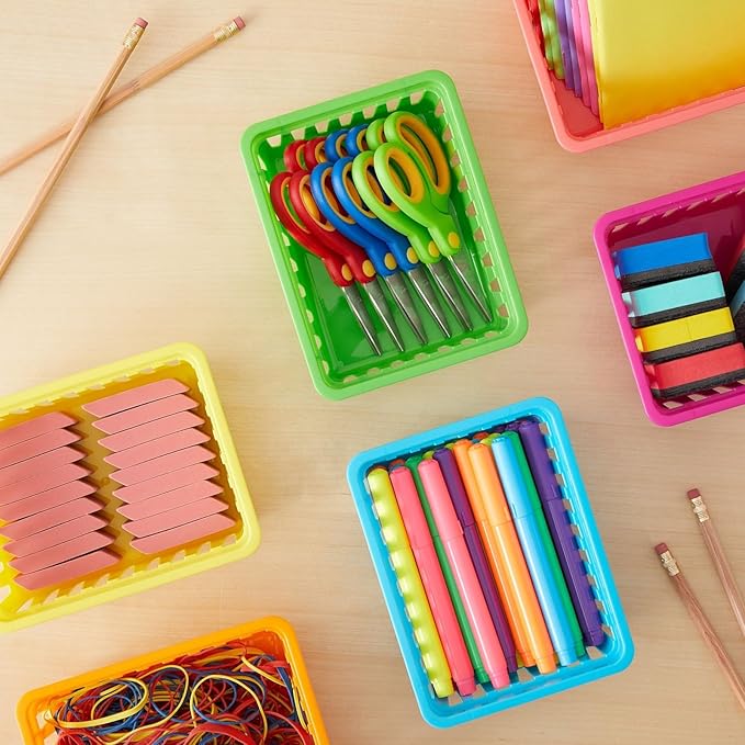 - Dimensions: These teacher bins measure approximately 6.1x4.8x2.3 inches, perfectly sized to hold pencils, pens, markers, scissors, paper clips, sticky note pads, and kid's art supplies