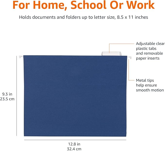 • Hanging file folder (25-pack) in Assorted Jewel-tone Colors (Teal, Purple, Gray, Navy, and Burgundy) holds 8.5 x 11-inch letter-size documents and folders