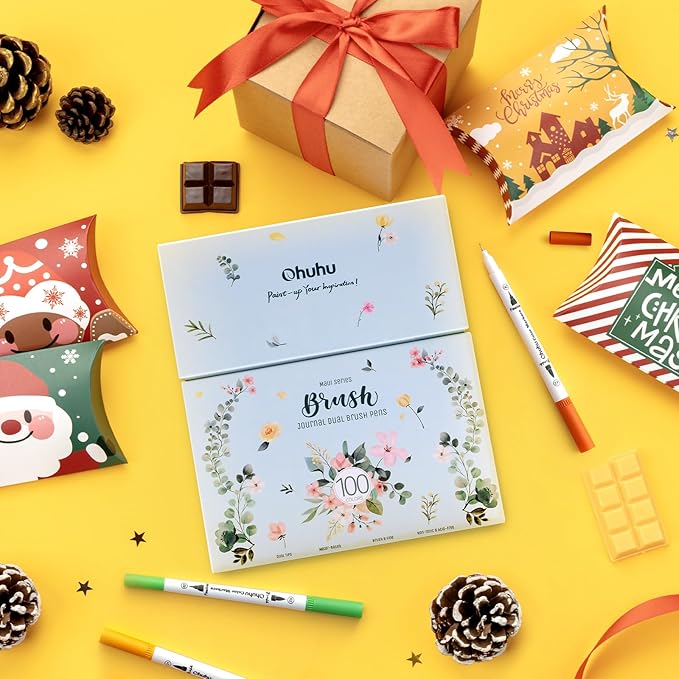 - INCLUDES 5 REPLACEMENT TIPS: Each package comes with 3 replacement brush nibs, 2 fine tips, and a pre-printed numbered color swatch card for your convenience. Ohuhu colored markers set make a perfect gift for birthdays, Christmas, Valentine’s Day, back to school, or any occasion!