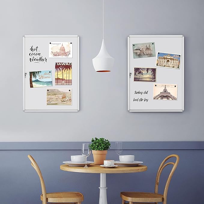 - Smooth & Magnetic Surface —The surface is durable for writing, you can write down notes or reminders and wipe off fully clean without stain.Simply use any magnets to pin all of your notes, memos, pictures, calendars, menus or reminders on the surface of the whiteboard.