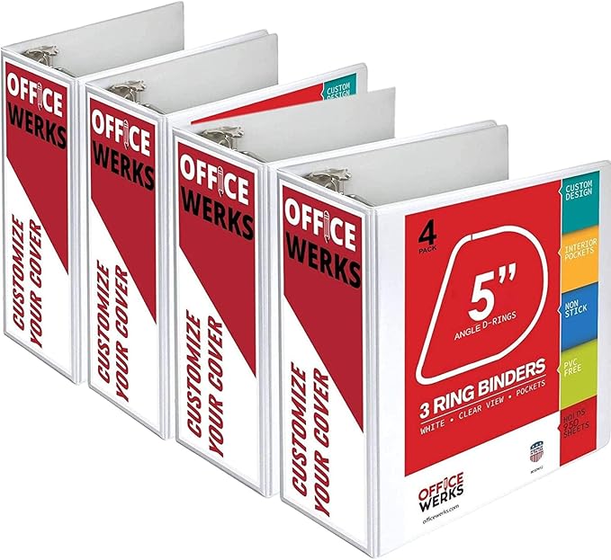 • Premium Quality - Heavy Duty Slant D-Ring three ring binder comes with two opaque interior pockets. Strong gap-free binder rings keep your papers securely in place. All 3 sides are customizable for a coordinated look, front, back and spine. Assembled in the USA