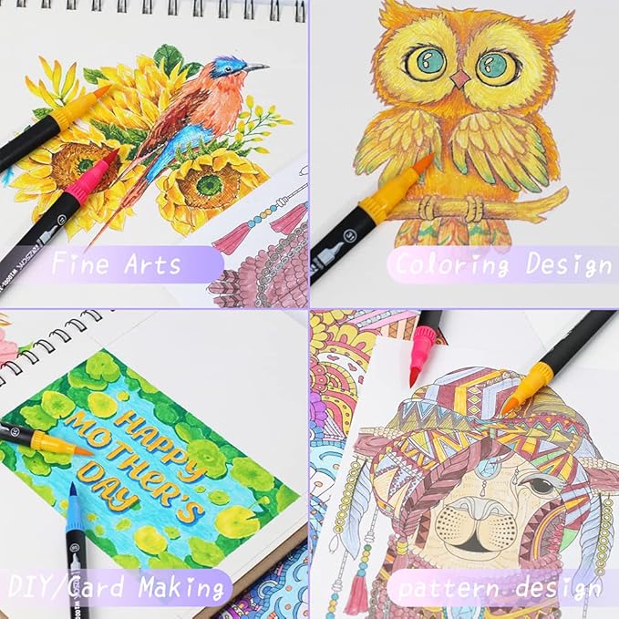 - 32 CLASSIC VIVID COLORS OPTIONS: This complete set of Duo Tip Pen art markers comes with a whopping 32 unique and vibrant color options to choose from, NO duplicate. Meet all you need for adult coloring books, drawing, coloring, sketching, doodling and just about anything else.