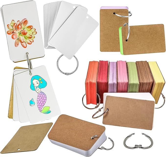 MotBach 400PCS Colored Blank Flash Card Index Cards with Binding Rings,8 Color Easy Flip Flash Card Study Note Card Perfect for Bookmark School Learning Memory Recipe Cards Game Cards(3.5 x2.2 Inch)