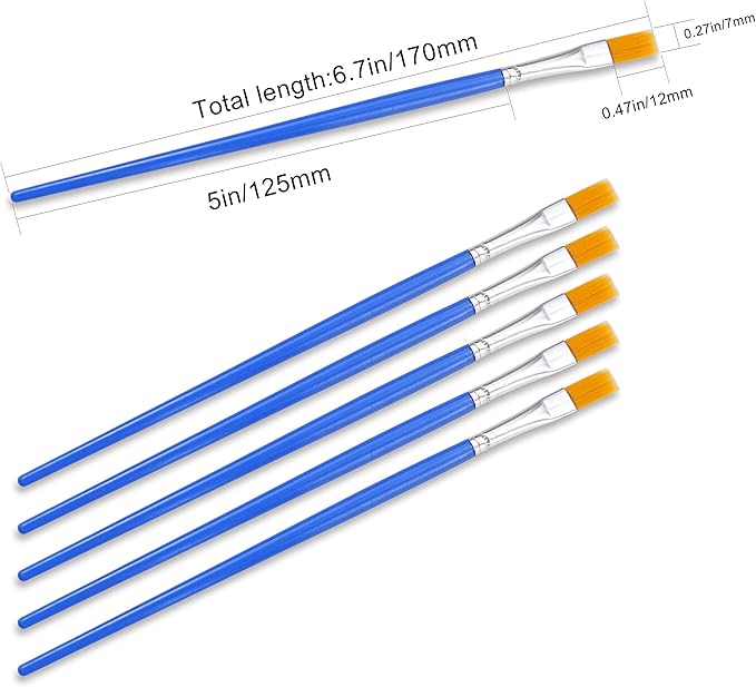 - ART BRUSHES: 120pcs paintbrushes make mixingcolor more easier, Total length: 17 cm (6.7 in), stroke length: 12.5 cm (5 in), brush length: 1.7 cm (0.67 in), brush width: 0.7 cm (0.27 in)perfect for artists, students, teens, kids and painters of all levels. Wonderful gift idea for your friends and families that enjoy painting!