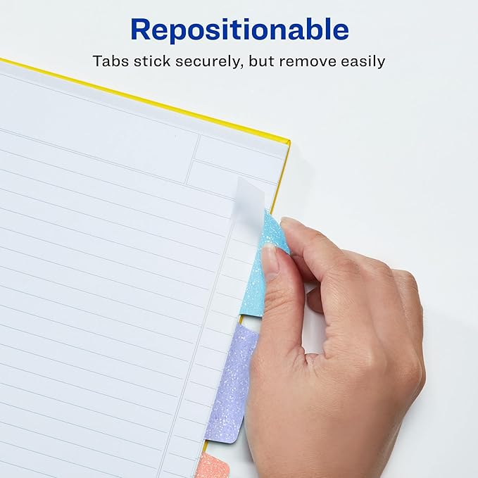Avery Margin Ultra Tabs, 2.5" x 1", Pastel Sparkle Shimmer Designs, 16 Repositionable Page Tabs (74150)