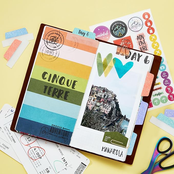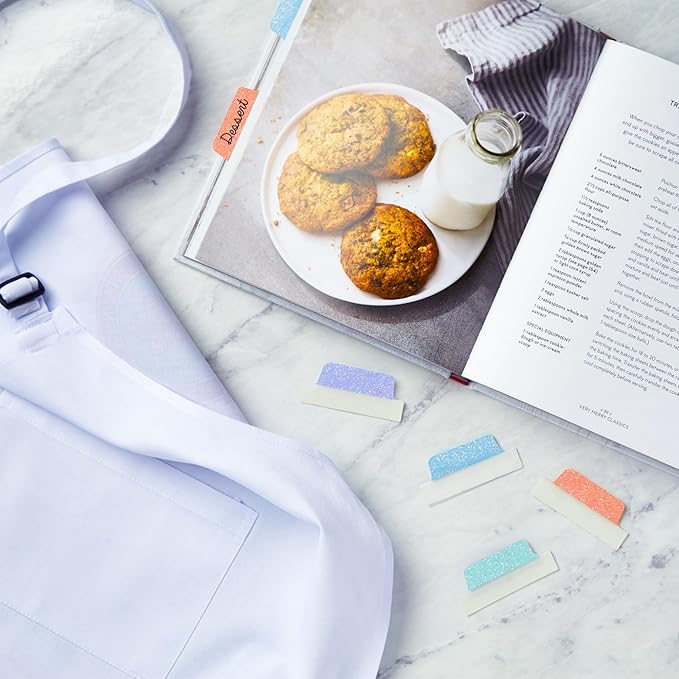 - Premium pastel purple, green, blue and orange note tabs coated with gold glitter add a sparkling shimmer to bullet journals and planners