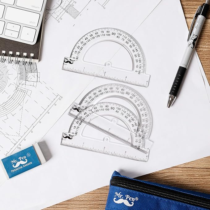 Mr. Pen- Small Protractor, 4 Inch Protractor, Pack of 3, Protractor Ruler, Drafting Tools, Protractor for Kids, Protractors Classroom Set, Protractor, Protactor 4 Inch, Math Geometry, School Supplie