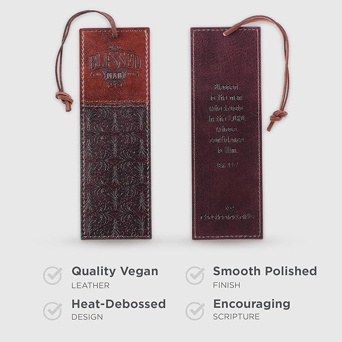 Christian Art Gifts Faux Leather Bookmark Blessed Man Jeremiah 17:7 w/Corded Tassel, Brown