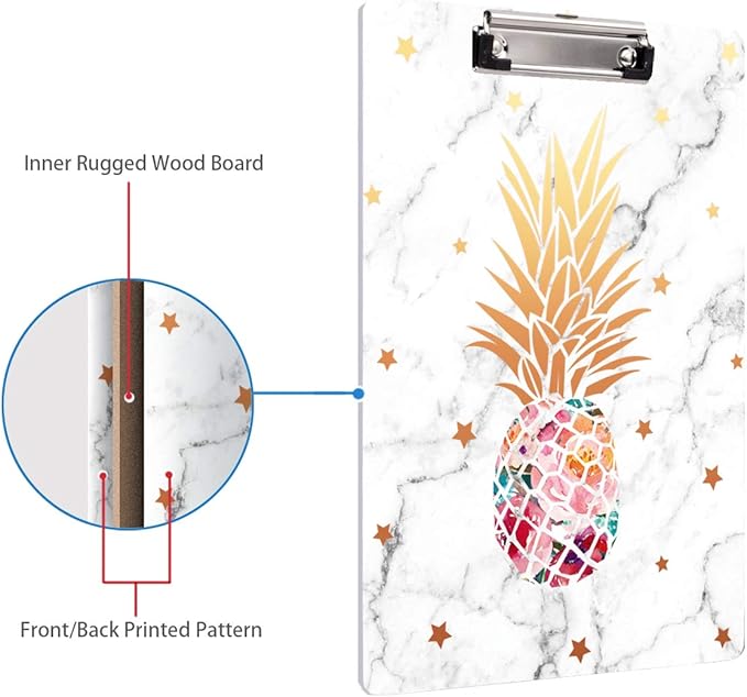 - Fashion cute print design, classic and chic pineapple elements, sturdy 2.5mm clipboard with full color printing and gloss lamination, say goodbye to monotonous traditional clipboard.