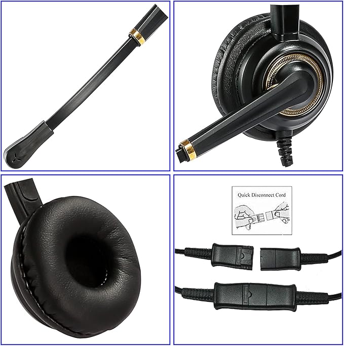 - EXCELLENT SOUND QUALITY: Call center landline phone headset with outstanding sound quality plus noise-cancelling microphone enables you and called side to hear every word crystal clear. Bendable and Rotatable microphone arm allows you adjust the microphone to any talking position, also place the microphone on either side. Big and soft ear cushion, no pressure no pain to your ear for long time wearing. Click stop adjustable headband perfect fit for all head sizes.