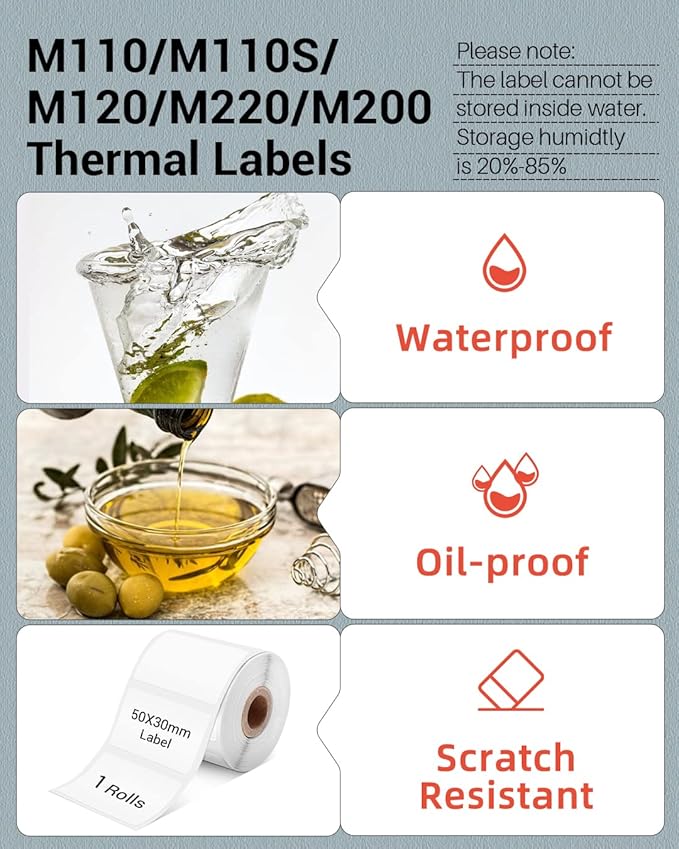 - Thermal Label Features- Phomemo self-adhesive Multi-Purpose labels are water resistant, oil resistant, abrasion resistant and strong adhesion