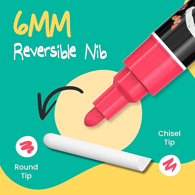- Versatile Tip Design - Featuring reversible 6mm bullet & chisel tips for versatile writing styles. Tips stay flexible with smooth ink flow, while tight-fitting caps prevent drying when stored