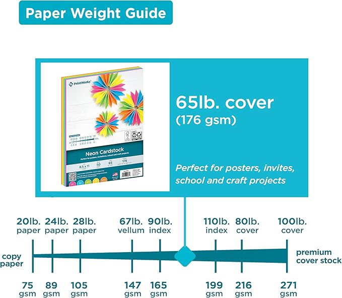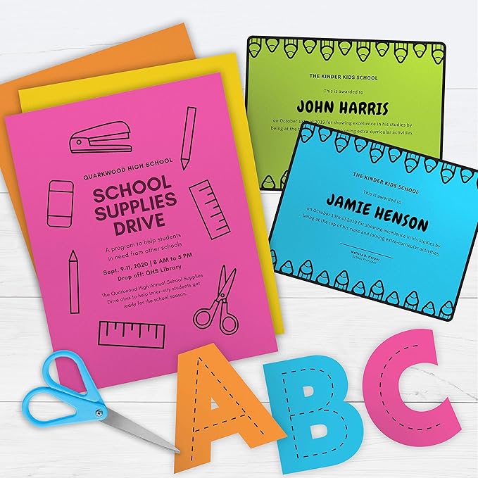 • With PrintWorks neon cardstock you can create and print impactful covers, cards, signs, school and craft projects