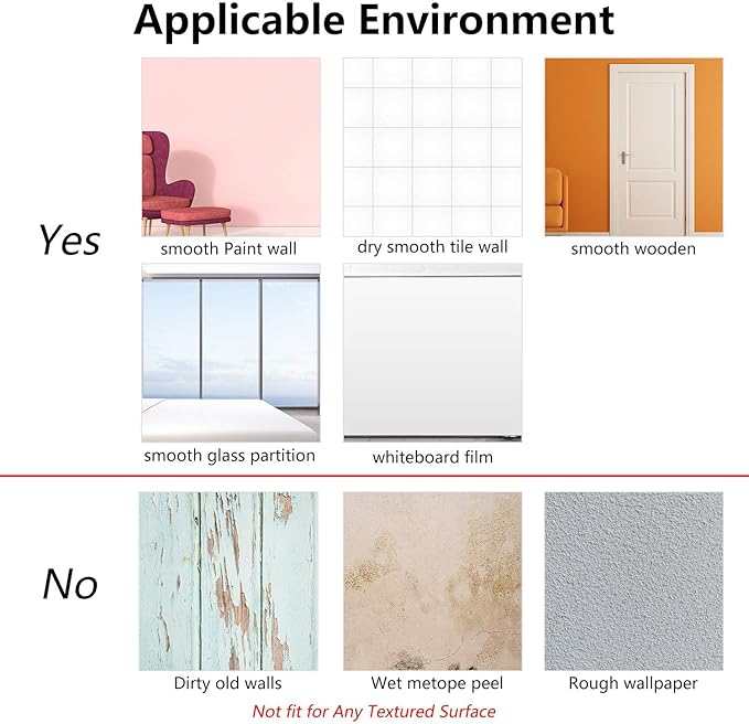 • Easy installation on smooth paint wall,dry smooth tile wall, wooden door,office glass partition, not fit for any textured surface