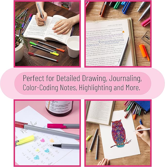 - 0.4mm Fine Tip Is Ideal For All Areas Of Writing, Drawing Lines & Details, Journal, Planner, Calendar, Note Taking, Sketching, Manga, Animation, Graphic, Design, Illustration, Included Artists Fine-Ink Drawings And Coloring Small Intricate Patterns