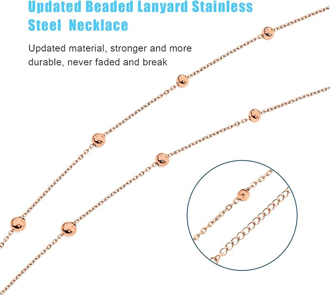 Retractable Badge Reel Lanyard with 2 Pieces ID Holder for Women, Fashion Beaded Chain Premium Stainless Steel Lanyard Necklace Water Resistant Name Badge Holder